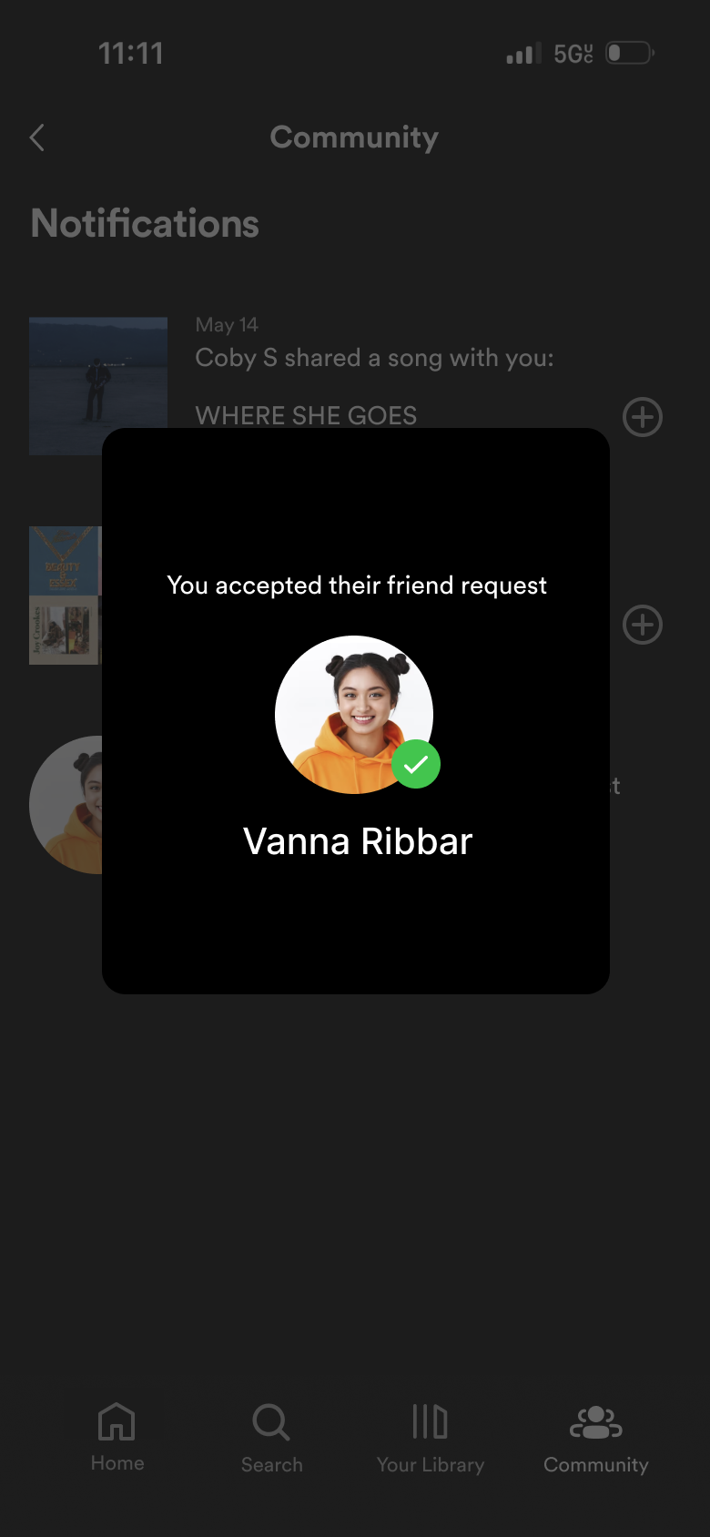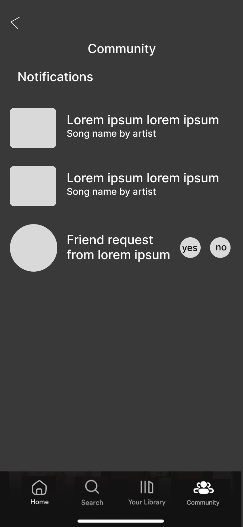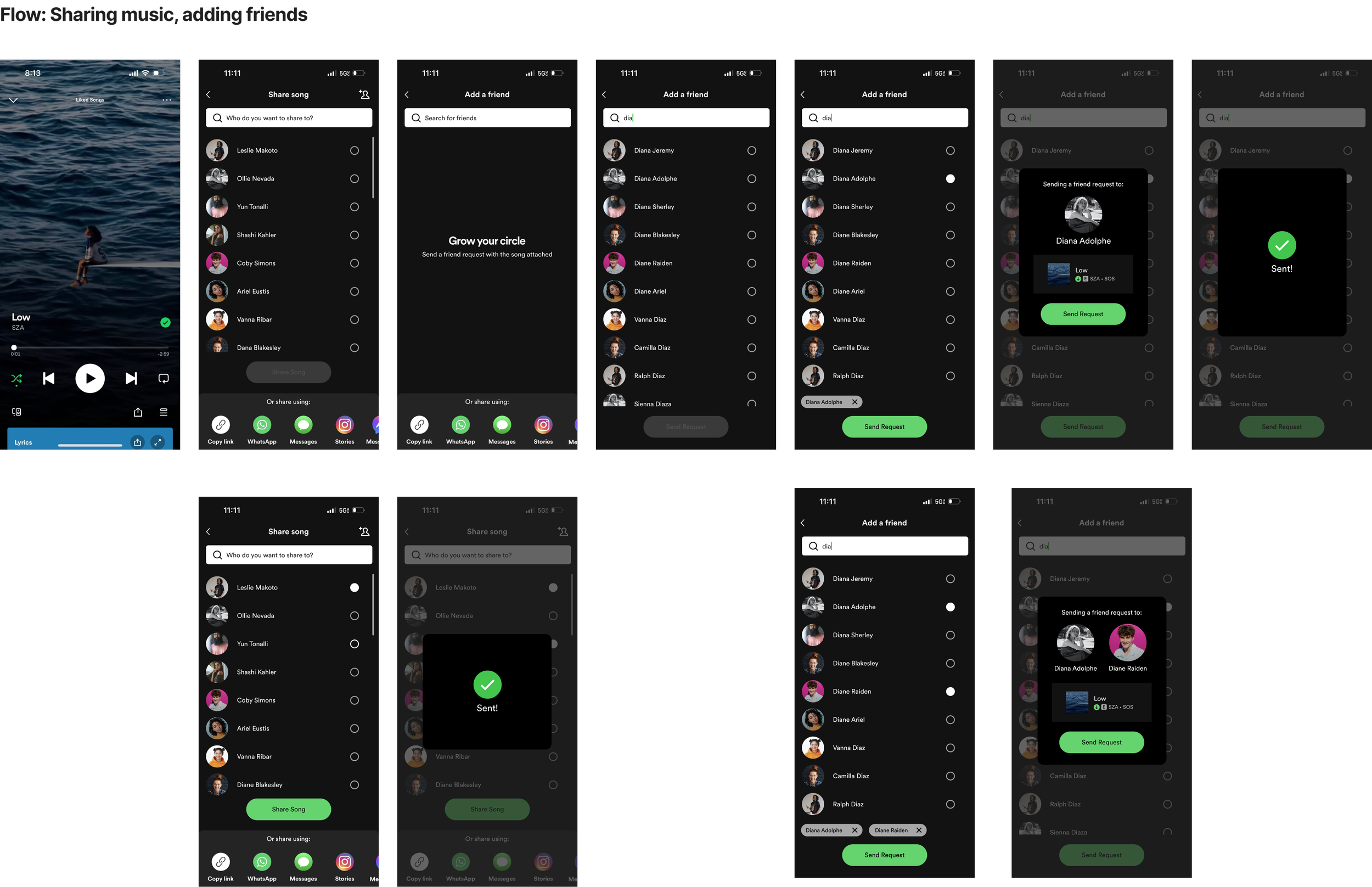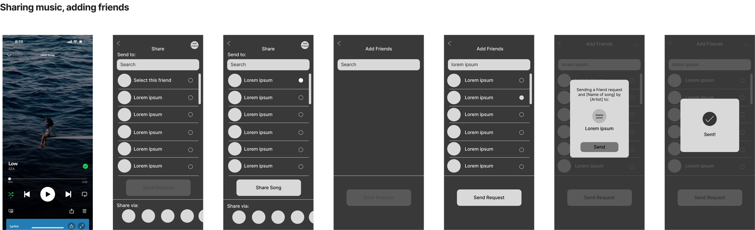 I began developing ideas for a “Community” feature on the Spotify mobile app, in which users could interact more efficiently with other Spotify users. The feature includes being able to add others as “Friends”, which would allow them to share artists, songs, as well as collaborate on playlists directly on the platform, rather than having to share it externally.